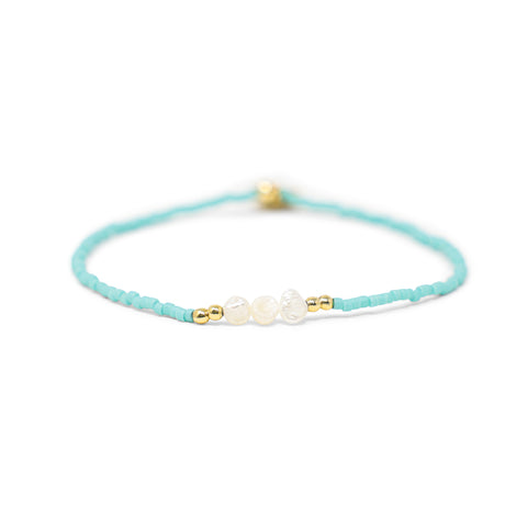 Teal Pearla & Gold Stretch Bracelet
