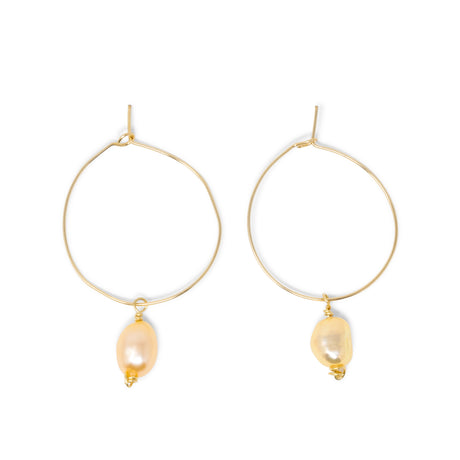 Gold Hoop Earring w/ Peach Pearl
