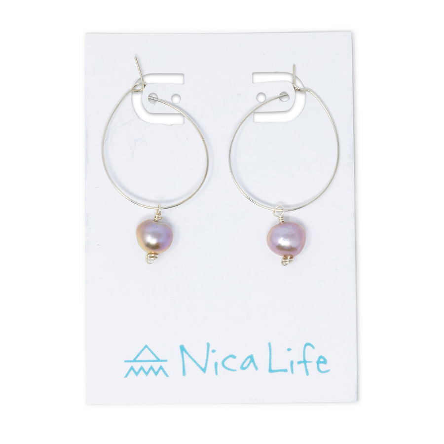 Silver Hoop Earring w/ Purple Pearl