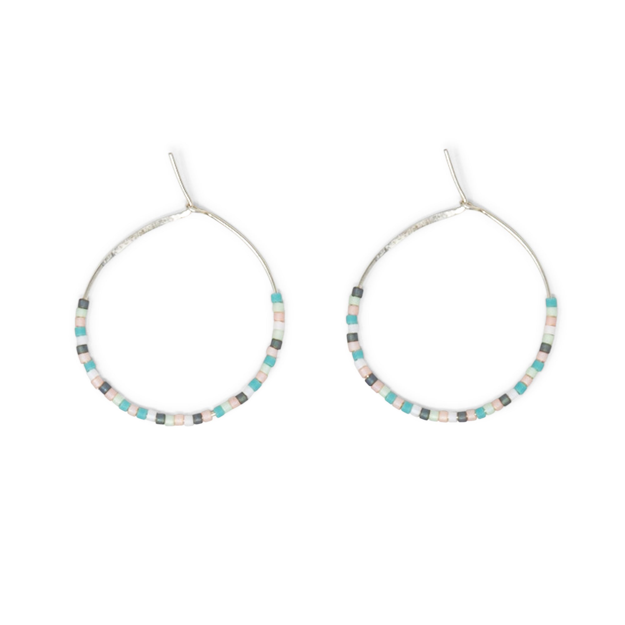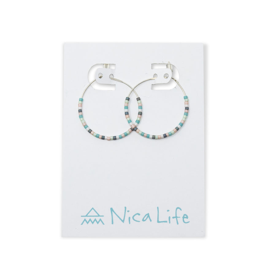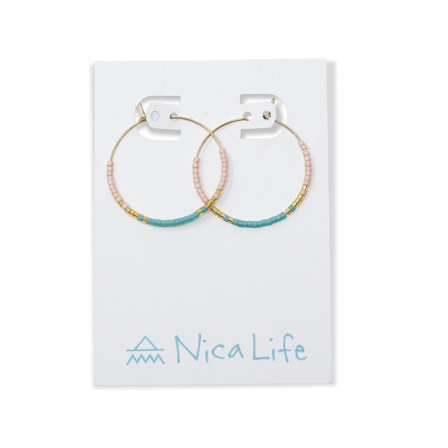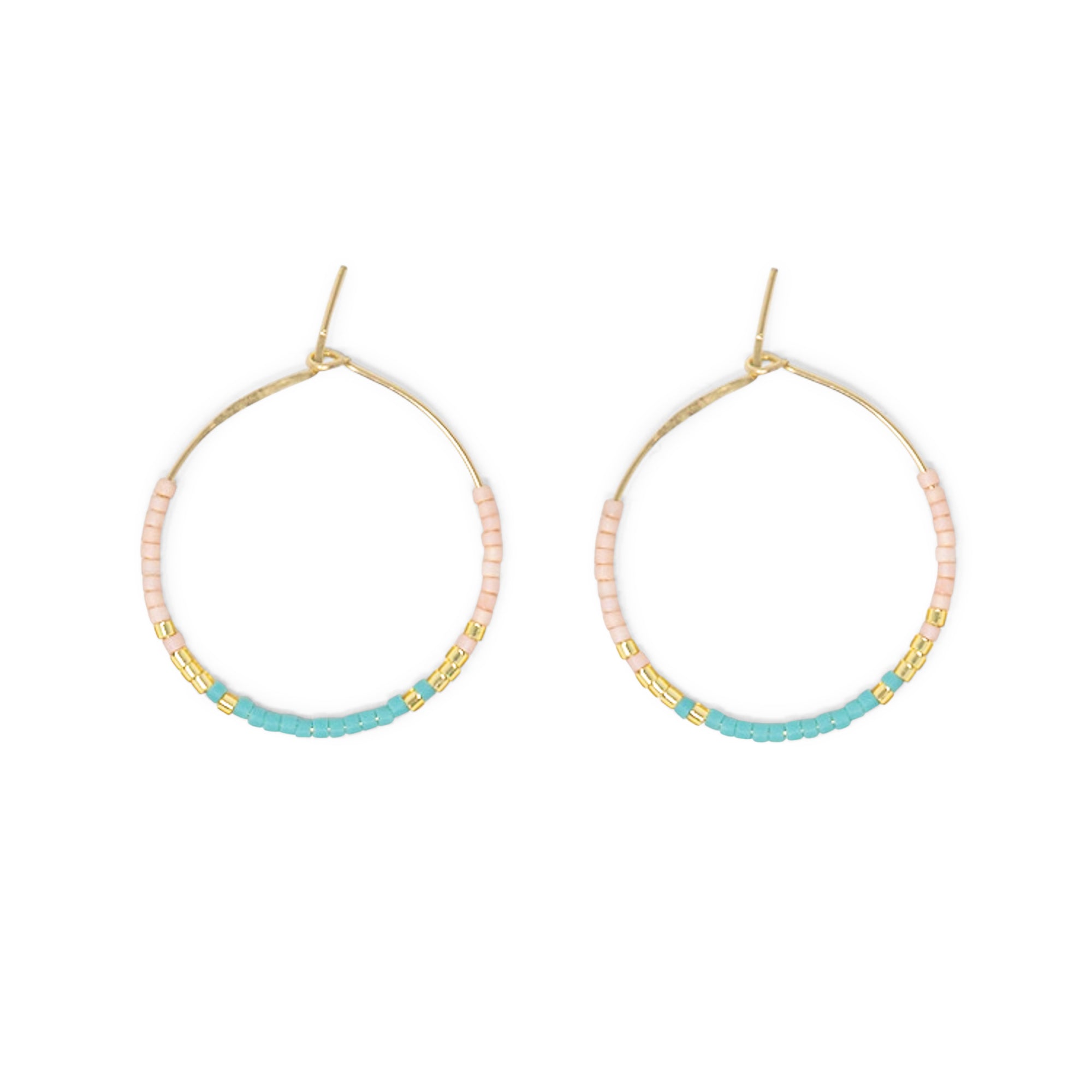 Teals & Pinks - Seed Bead Hoops, Wildflower Colors in Gold