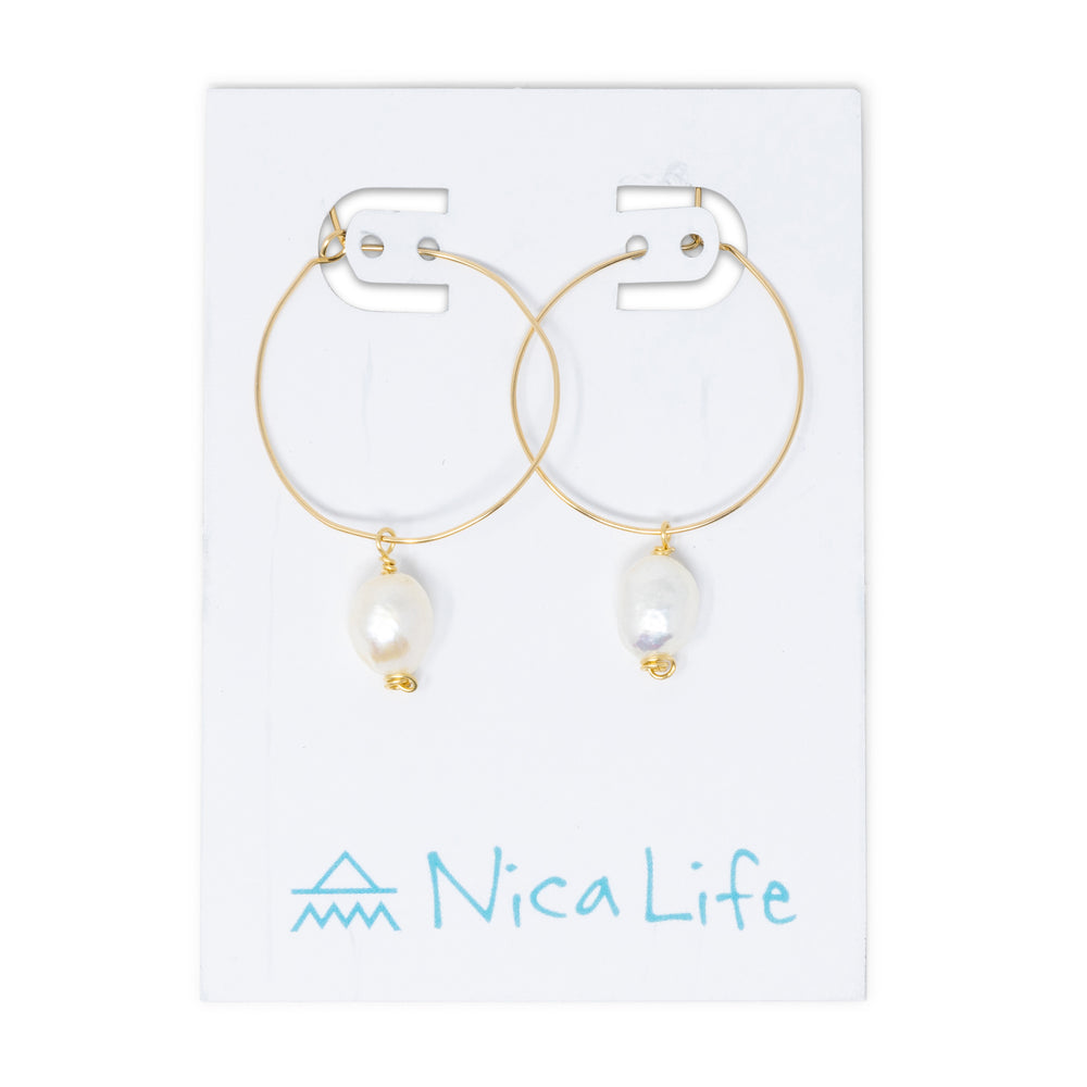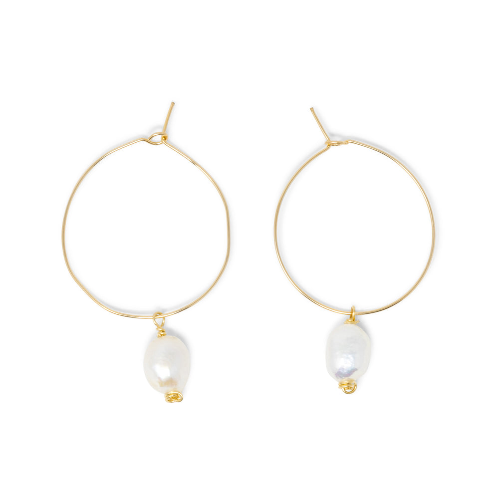Introducing your new favorite hoops! These simple and stylish earrings are made with gold filled wire and beautiful fresh water pearl dangles. Remove the pearl for a simple delicate hoop or wear the pearl for a night out.
