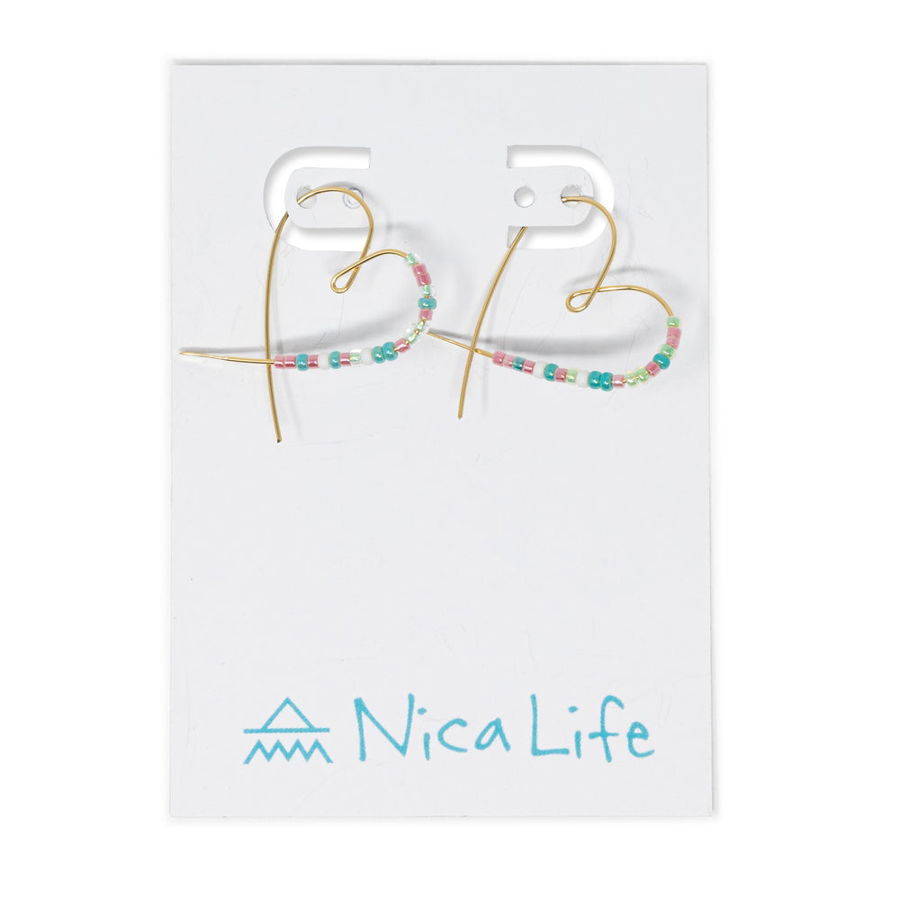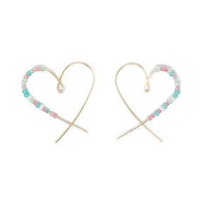 Heart Seed Bead Threader Earring Pink & Teal w/ Gold is backordered and will ship as soon as it is back in stock.