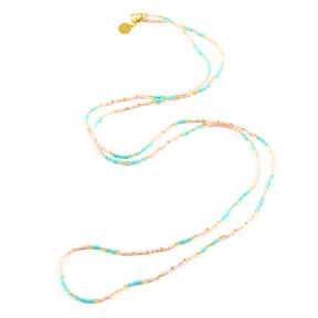 Our handmade Multiway Beaded Strand is the perfect piece for minimalists everywhere! Wear it long for a pop of color, double it up for a layered short necklace look, or wrap it around your wrist as a bracelet!