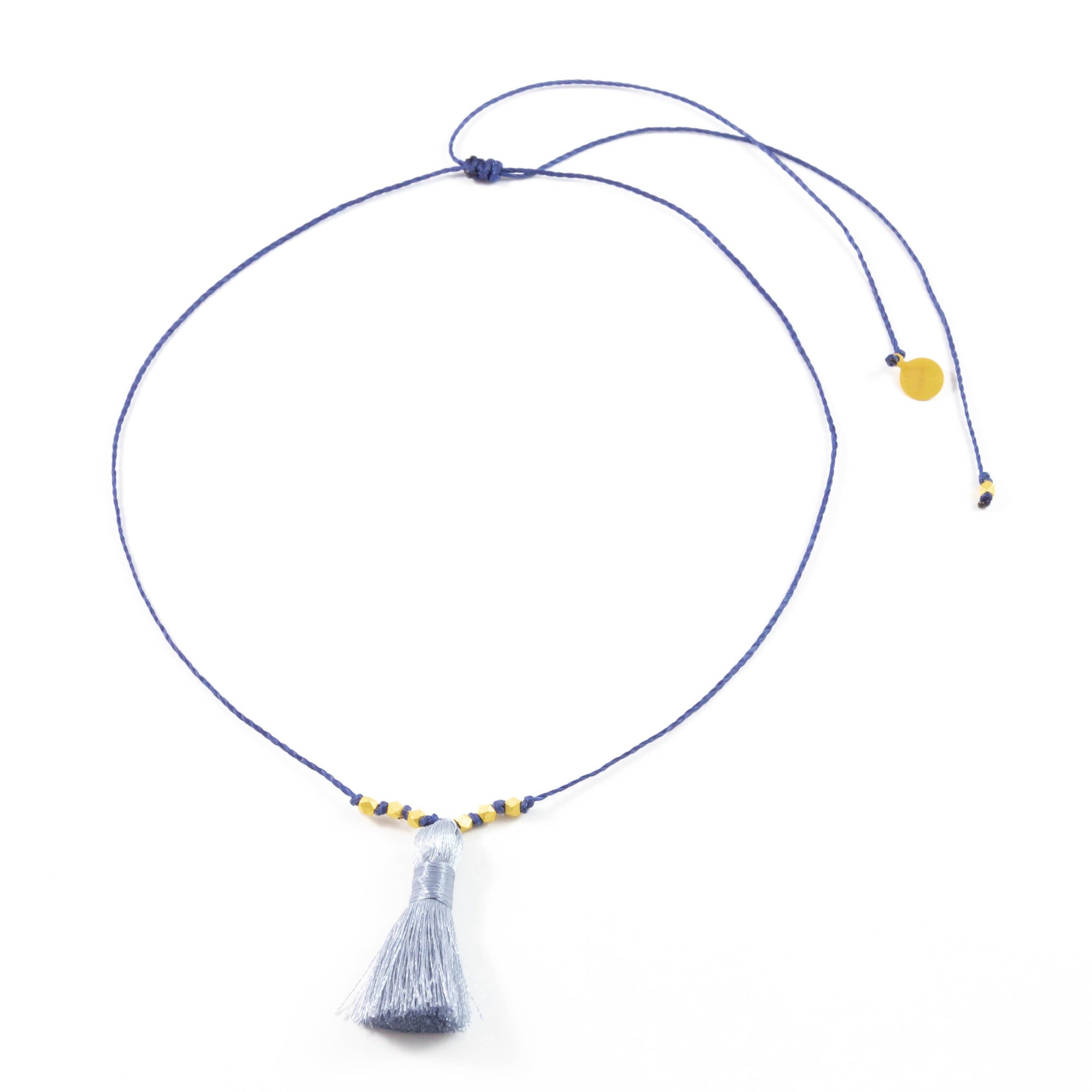 Navy w/ Denim Tassel On a String Necklace in Gold