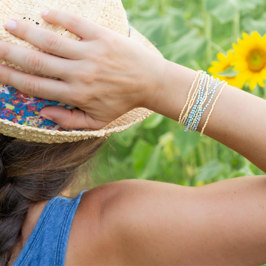 Sunflower & Stormy Ocean Two Tone Dot Beaded Bracelet