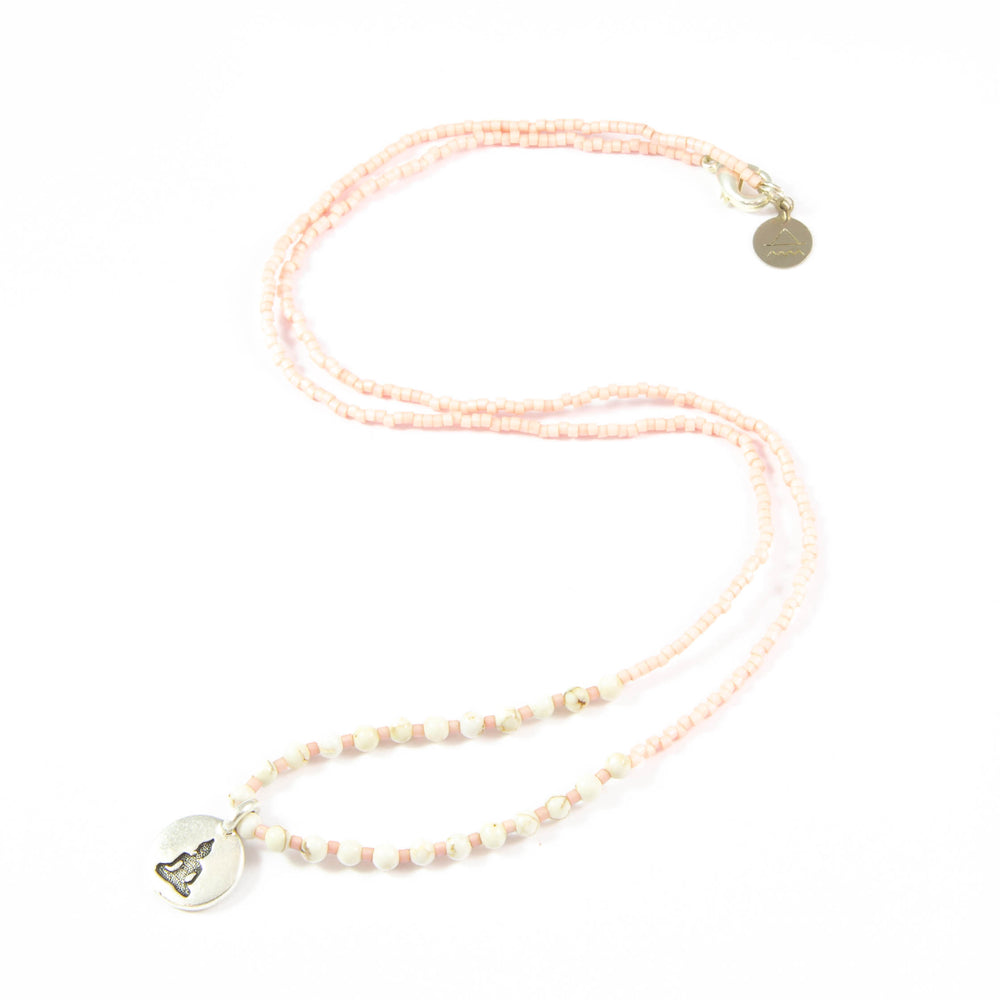 Coral w/ White Turquoise Stone Buddha Charm Necklace in Silver is backordered and will ship as soon as it is back in stock.